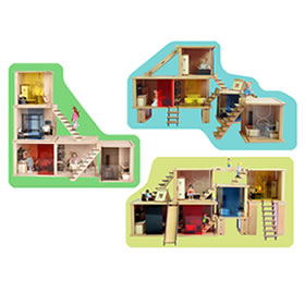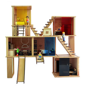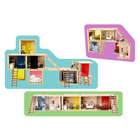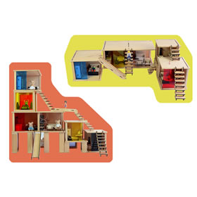 Mekanları kurgularken oluşacak teraslar, garajlar, helikopter pisti ve oynarken ortaya çıkabilecek yeni alanlar, bu alanların senaryosu, çocukları “mış” gibi oynamaktan daha öteye taşıyıp açık uçlu bir oyuna yönlendirmektedir. Merdivenle oynamaktan keyif alınacağı düşünülerek 2 adet merdiven sete dahil edilmiştir. Bu merdivenler tüm odalara uyumludur.